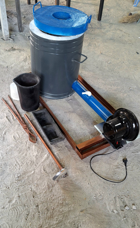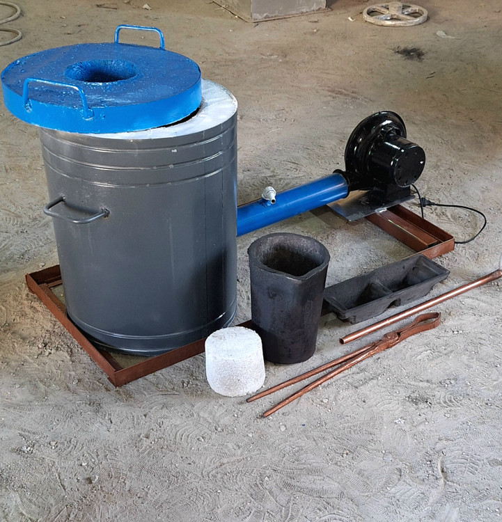 این کوره همراه با لوازم کامل شامل : بوته قالب دمنده مشعل انبر سرباره گیر زیر بوته ای پایه کوره و درب میباشد